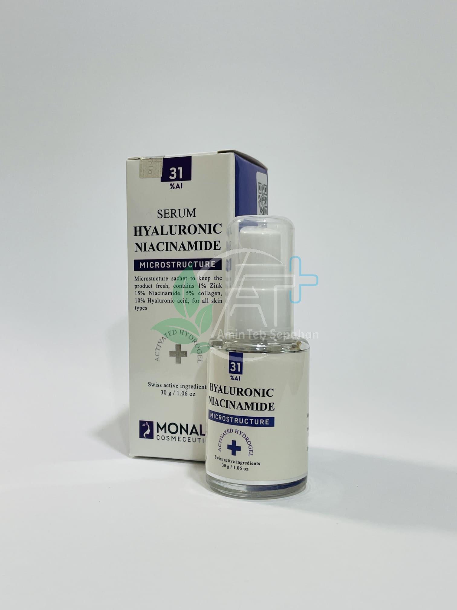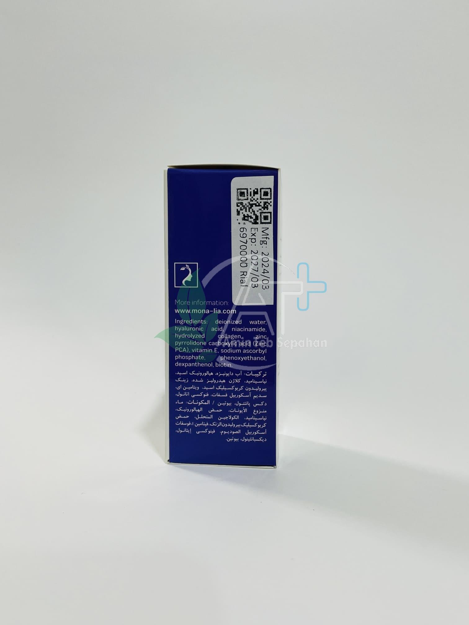 - حاوى 15% نیاسین آمید، 10% اسید هیالورونیک، 5% کلاژن و 1% روی