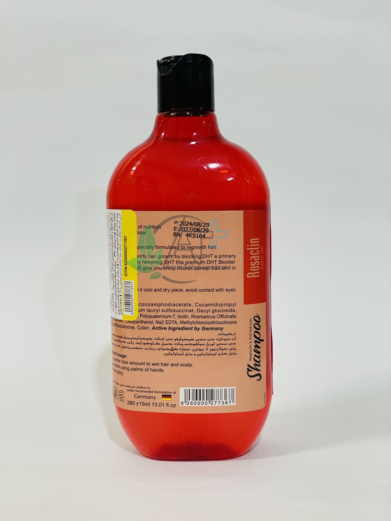 شامپو ضد ریزش و تقویت کننده مخصوص بانوان رزاکلین موثر در کنترل انواع ریزش و تقویت فولیکول مو است. کافئین موجود در محصول موجب افزایش گردش خون پوست سر و تقویت رشد مو می شود و درکنار سایر ترکیبات نظیر بیوتین، باعث رویش مجدد موها می گردند.