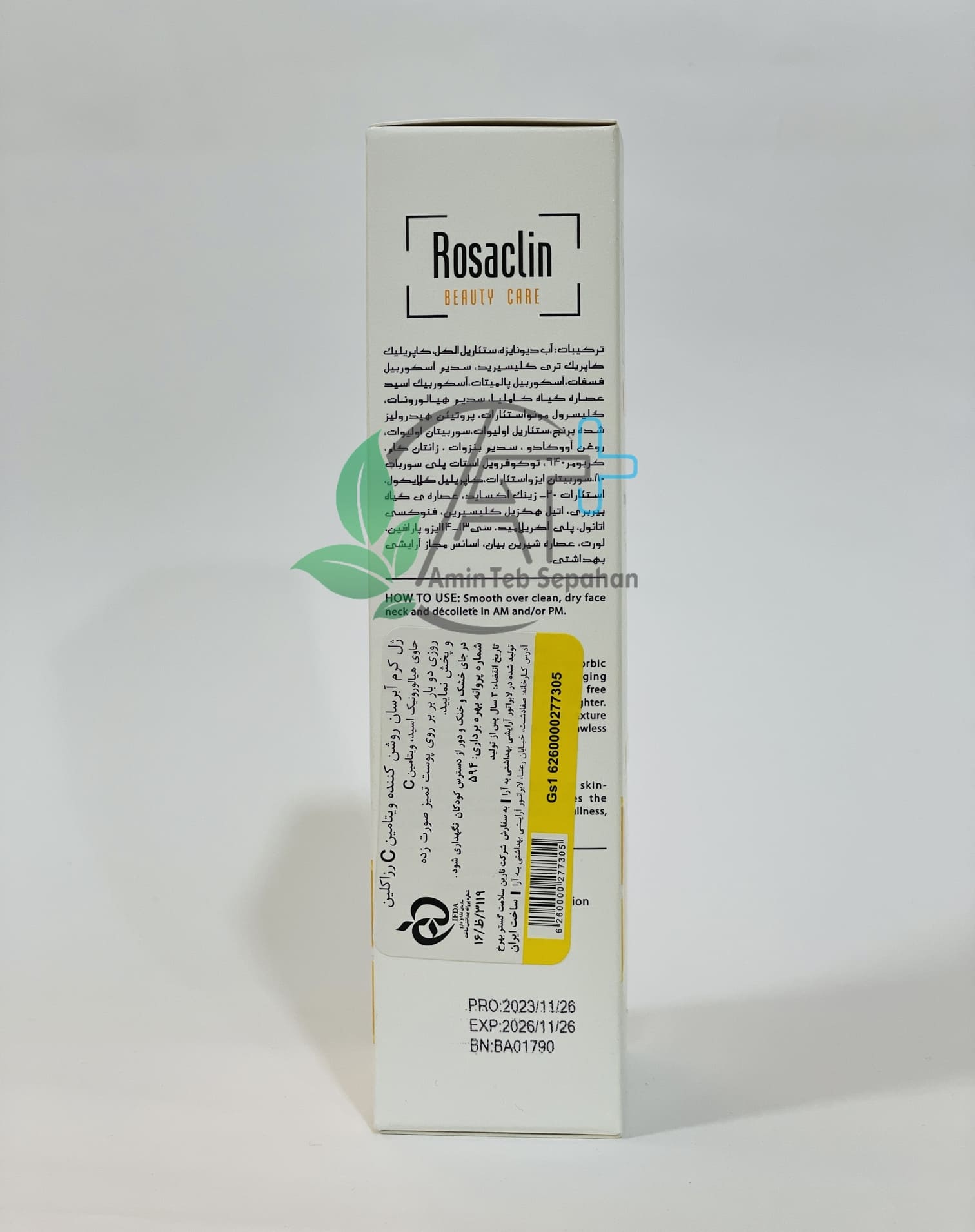 کرم ویتامین C صورت رزاکلین با استفاده از فرمهای پایدار و محلول در چربی ویتامین C باعث نفوذ این ویتامین به لایههای زیرین پوست و فعال شدن تدریجی آن میشود. ویتامین سی علاوه بر داشتن خواص آنتی اکسیدانی قوی، آنزیم تیروزیناز را مهار مینماید و از تولید ملانین در پوست جلوگیری میکند.