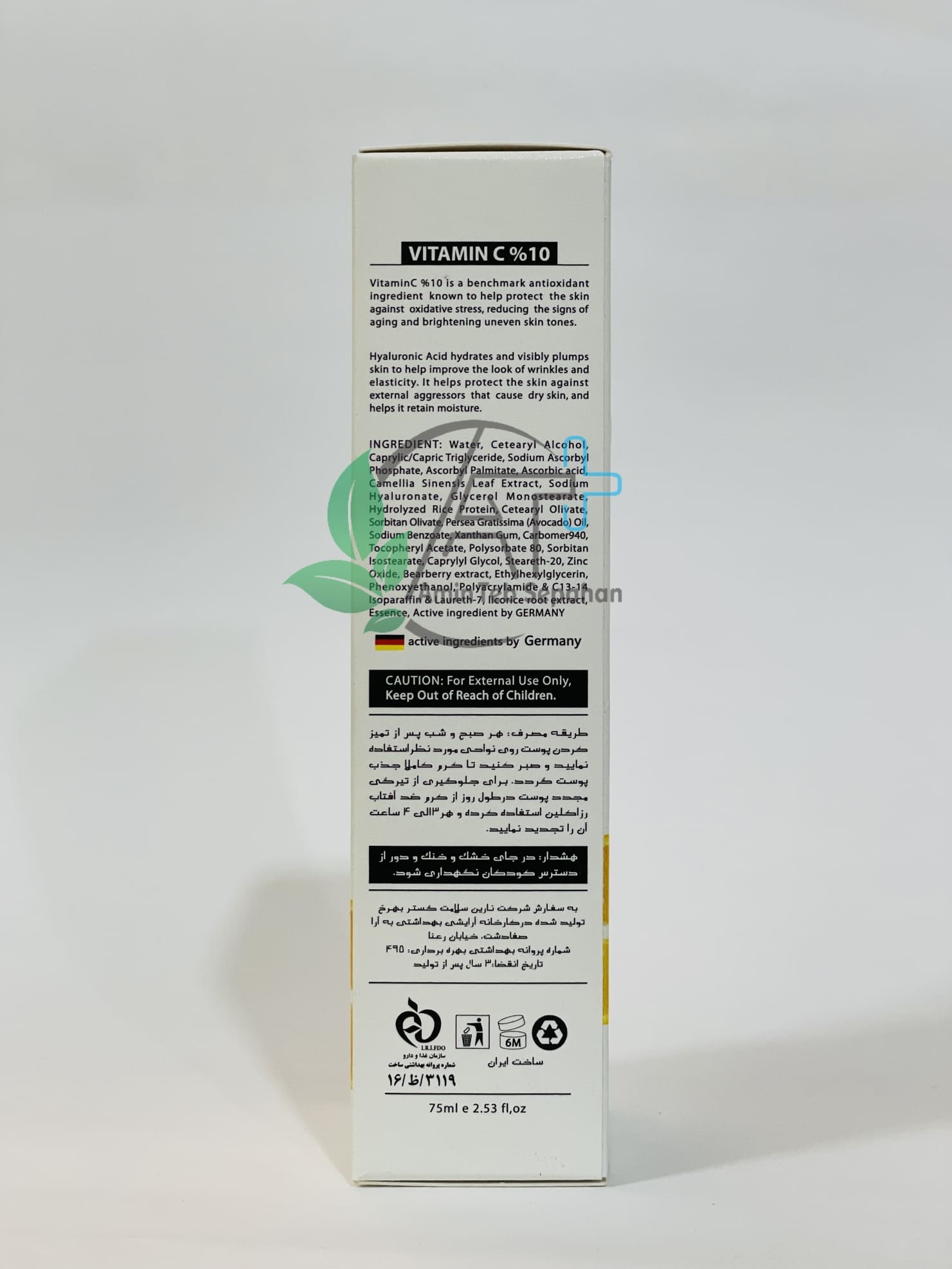 - آسکوربیل پالمیتات ۱۰% ( روشن کننده، جلوگیری از پیری زودرس پوست، تقویت کلاژن سازی )