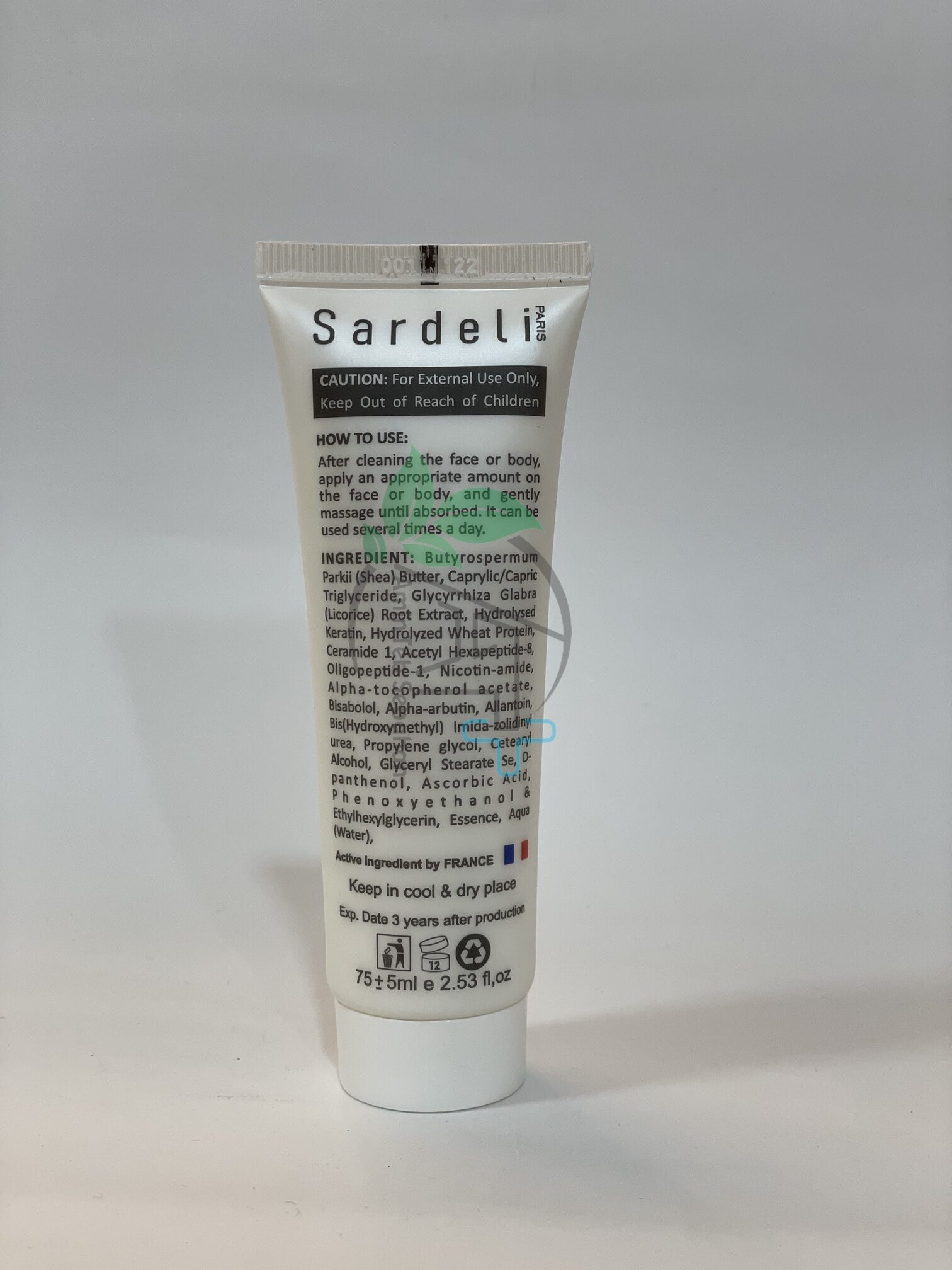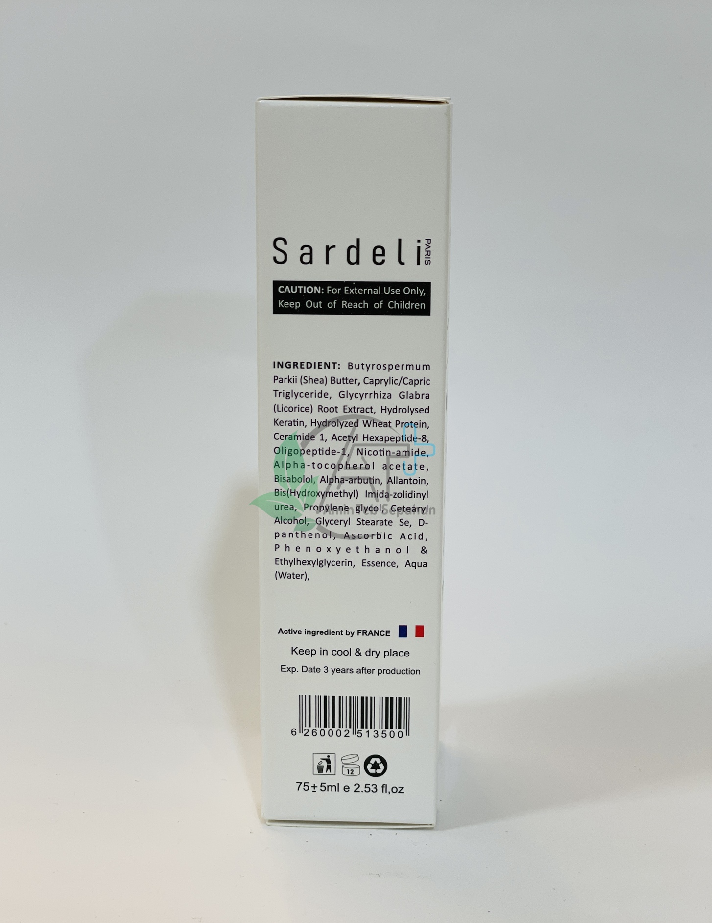 يحتوي على ستيل هيكساببتايد، زبدة الشيا، سيراميد، ألانتوئين، ألفا أربوتين، بروتين جنين القمح، ديكسبانثينول، كالاندولا وأكسيد الزنك.