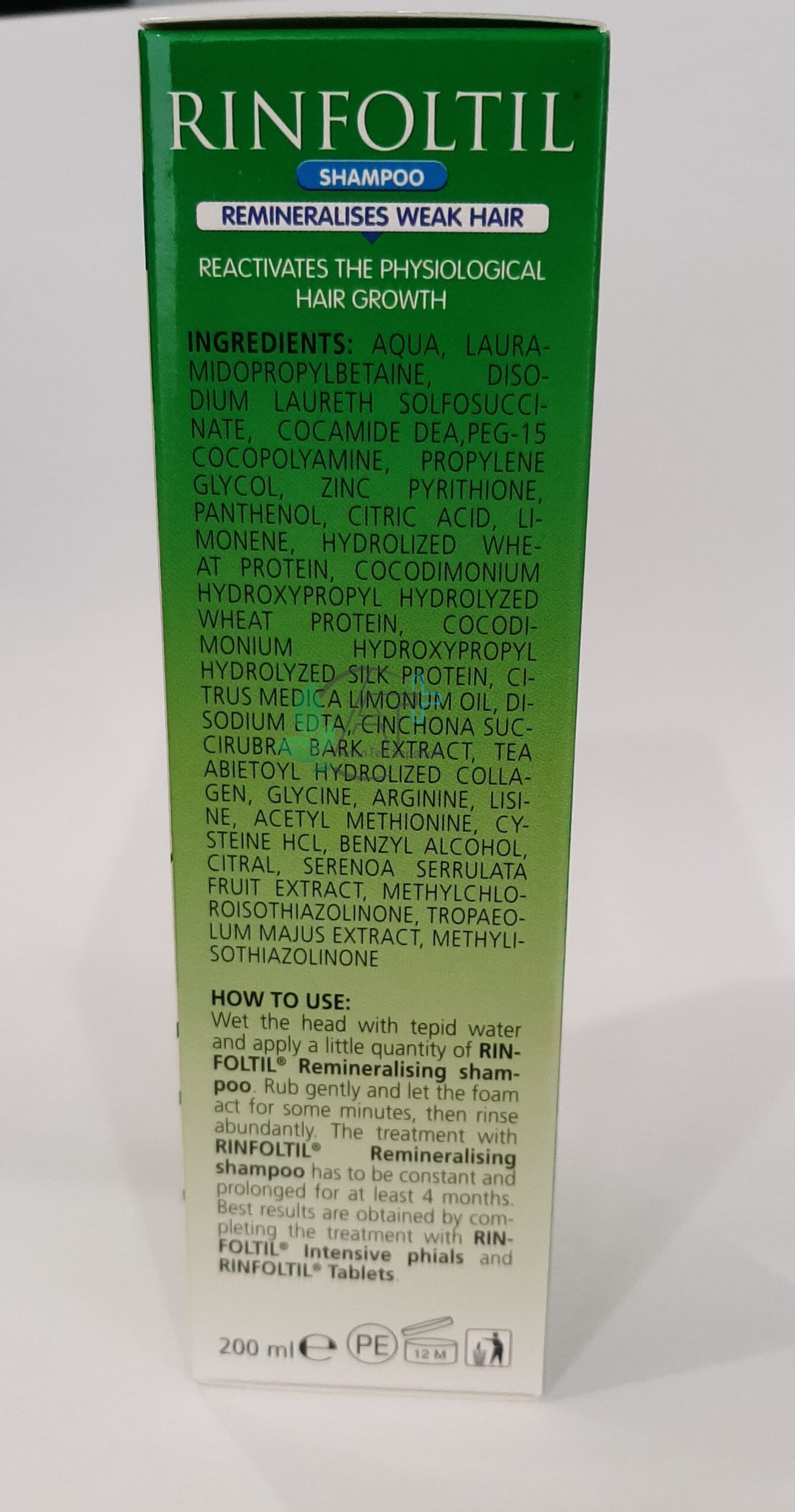 شامبو Rinfoltil هو منتج متخصص لتقوية وتجديد الشعر الضعيف والمتضرّر. باستخدام مكونات طبيعية وفعّالة، يساعد على استعادة صحة ولمعان وحيوية الشعر، ويُعد خياراً مناسباً للأشخاص الذين يعانون من تساقط أو ضعف الشعر.